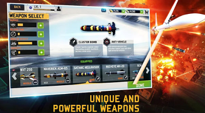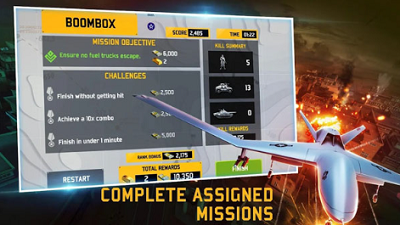 2、控制你的拉风炫酷无人机,配备最好的武器炮弹,将敌人一网打尽统统铲除。