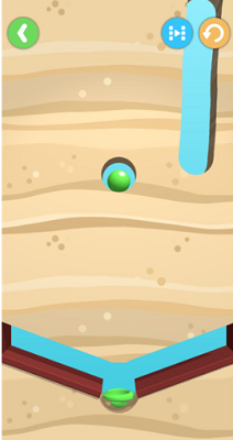 5、如果玩家滑动制作通道失误或者小球滚不到卡槽中,如下图,玩家可以点击重新按钮进行重玩;