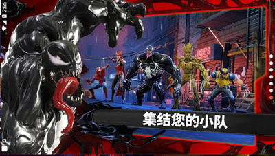 2、征募你的军队,创建由蜘蛛侠、美队、洛基、艾丽卡、奇异博士、毒液等强劲漫威英雄与超级反派组成的小队