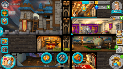随着王座室(相当于主城)等级提升,更多玩法功能相应开放,比如建造不同功能的房间、世界区如竞技场(王座室5级开放)、传送门(王座室6级开放)等战斗场所开放。