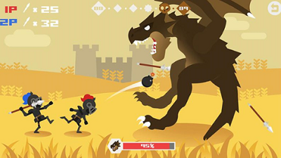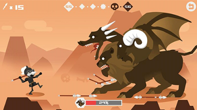 3、使用标枪的战斗技术,把手中的长矛、斧头扔向怪物,小小勇士面对巨大恶龙、野猪也无所畏惧。