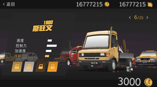 那么关于游戏内容偏少这一方面,真的是游戏的硬伤。开局数了一下车子的数量,总共为20辆,地图看似有四张,但不过第四张还没有做出来,所以也不晓得作者是不是年根的类型,地图具体什么时候出来是个谜,前三张地图虽然都不错,但在游玩久了之后,肯定是会慢慢的腻了的。