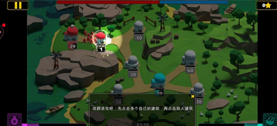 2、玩家将控制红色势力的城堡通过点击不断去占领不同颜色的城堡,而选择进攻不同类型的建筑也会有不同的效果;