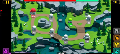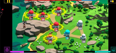 游戏开始时你将拥有一座或多座屯有兵力的堡垒,你的目标是占领那些未被开拓的堡垒,一步步囤积士兵,运用谋略与智慧消灭其他敌方士兵,赢得战局胜利。首先点击拥有兵力的堡垒(我方堡垒标识为红色),然后点击未被占领的(未被战令堡垒标识为白色),就能指挥士兵进行攻陷,争夺成功后,该堡垒变为红色。当兵力积累到合适数量时,即可进行下一步的讨伐攻占。当敌方兵力以及城堡全部被我方攻陷时,战斗宣告胜利。