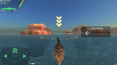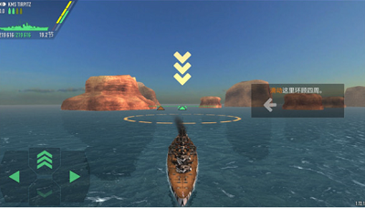 1、首先打开战舰激斗,进入战斗即开始新手教程,跟随教程将战舰开进圆环中;