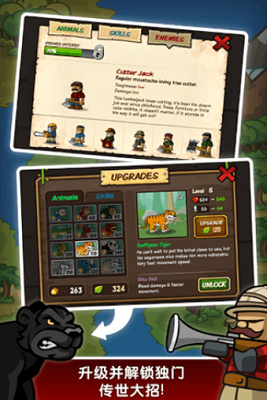 发现并升级猩猩,熊猫,香蕉和这个野外世界里其他更多独特的角色和技能,它们都有自己特殊的能力。