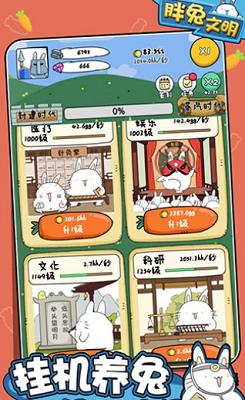 胖兔文明破解版内置作弊修改器是一款以模拟经营为主题玩法的休闲手游,玩家们可以在带领自己的胖兔们,不断创造新的奇迹,玩家在游戏中将扮演部落首领的角色,带领种群大力发展生产力、开辟土地、发展人口、农业、工业、交通等多种项目游戏中有多个种族、多个地图、多个科技分支、多种资源等元素,玩家需要根据不同的需求和地形选择最佳的科技、建筑和战略方案,开局需要慎重思考选择自己的族群加入其中,这也会直接决定后续的发展路线和难度,逐步将星球带入新文明时代。游戏不仅考验玩家的策略布局能力,游戏者通过安排和使用钱来发展人口、农业、工业、运输等项目来赚钱还融入了丰富的休闲挂机元素。