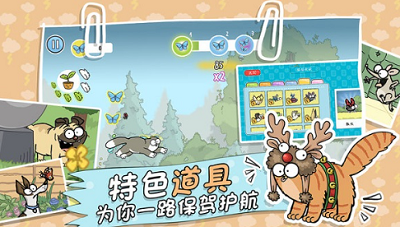 收集薄荷以触发薄荷模式,获得得分翻倍奖励,再而跟随蝴蝶奔跑,可以有小弟帮助你进行跑酷。