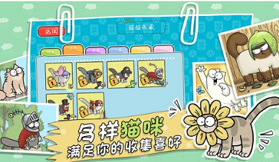 3、游戏的风格是卡通风格,特别可爱好玩,游戏为玩家提供了丰富的猫咪品种选择。