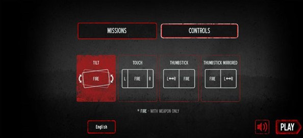 进入游戏玩家需要在TILT、TOUCH、THUMBSTICK、THUMBSTICK MIRRORED四种操作方式中,选择一种操作模式(操作模式在主界面右下角设置中选择)。
