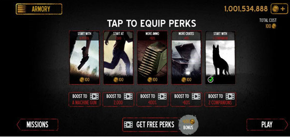 在开始关卡之前玩家可以自由选择五种道具,这里注意每种道具都是要花费100金币才能装备,而且只限当局使用。
