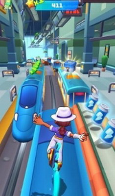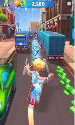 3、游戏中你将是他们其中一名超级跑者,在城市中穿梭,奔跑,跳跃、滑行和躲避障碍物。