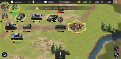 二战名将世界战争采用绚丽而色彩鲜艳的画面,玩家将在战场上扮演主角并亲身参与战役。精心设计的画面与真实历史还原,使玩家身临其境感受二战的峥嵘岁月。
