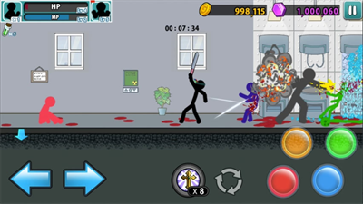 2、在本作中,一开始你可以选择九个不同的火柴人角色开始战斗,单人闯关模式和团队战斗两大模式任你选择,丰富的火柴人角色绝对拥有让人目不暇接的视觉感受。