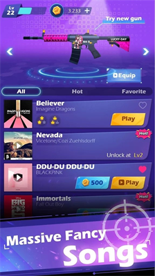 4、玩家可以在商店中购买自己喜欢的枪皮肤,将枪击和音乐相结合,就能用自己喜欢的枪支开始射击啦。