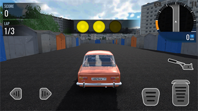 5、进入游戏如图,玩家需驾驶俄罗斯汽车进行跑圈,屏幕左边控制方向,右边则为油门和刹车;