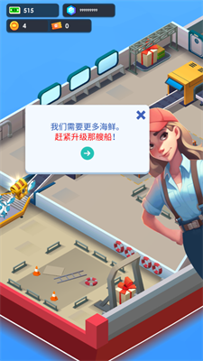 安装、维护和升级能帮助你加工海鲜产品的机器。随着工厂收入的增长,获取更多的渔船。这将帮助你获得更多种类的海鲜,增加你的收入。
