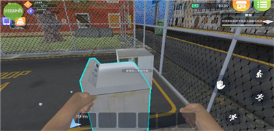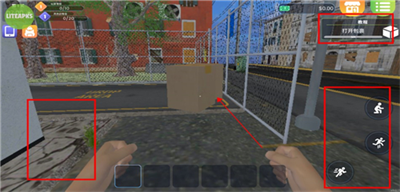 3、左侧界面可以控制角色移动,右侧可以控制角色奔跑,跳跃和蹲下,右上角的是教程,跟随教程打开前面的两个箱子