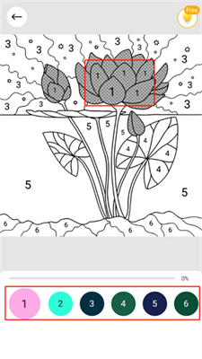 2、进入绘制界面,在下方点击与图片人物对用的数字颜色即可进行填色;