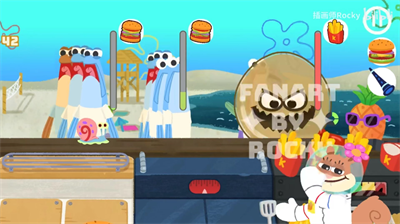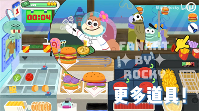 2、【经营店铺】在里面经营属于自己的蟹堡王,每天都有海量的顾客前来购买,了解汉堡包的制作流程,不断增加速度。
