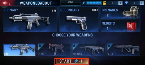 5、选择好枪支,点击START消耗一点蓝进入游戏。
