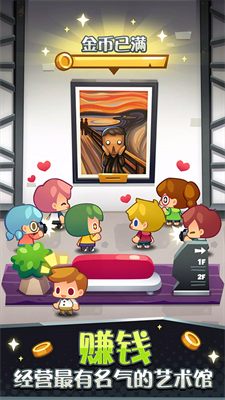艺术大亨破解版无限金币钻石版是一款极富创意和乐趣的趣味经营休闲手游,玩家从全球收集这些珍贵的名家艺术品,通过展示收藏的艺术作品来吸引游客参与,为此奠定的经济基础,参展全球,从一间无名的艺术馆开始,成为世界闻名的最艺术馆,登上世界之巅,玩家可以购买和展示各种不同风格和类型的艺术品,包括绘画、雕塑和摄影作品等。同时,游戏还提供了大量的装饰和设计选项,玩家可以根据自己的喜好来装饰画廊,这款游戏以精美的画面和丰富的色彩表现出艺术的魅力,让玩家在游戏中感受到艺术的无限可能。