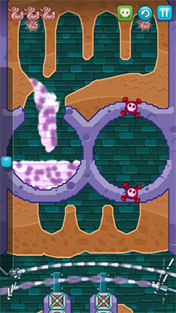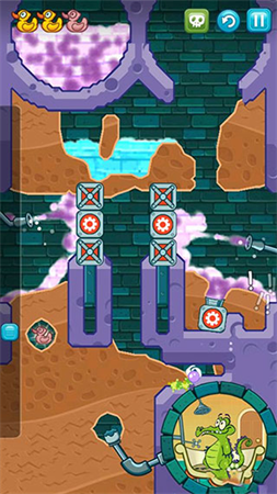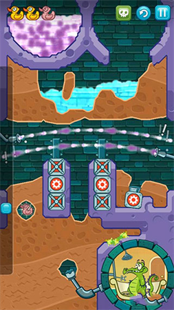 玩家需要将水源通过管道引到小顽皮的浴缸中才能获得游戏胜利。