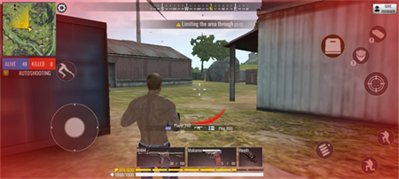 5、下来之后控制虚拟键让人物进行移动,并拾取地图的枪械武器来消灭其他对手;