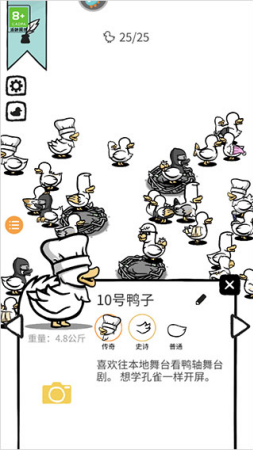 3、通过不断探索和培养,你将发掘更多有趣的鸭子角色,体验充满创意的鸭子世界。