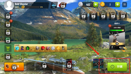 2、直接开始狩猎,玩家可以通过喇叭的声音判断猎物的方向,右边操作栏支持左右滑动,左边则是射击,中间为瞄准
