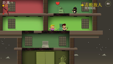 游戏让大家体验到了只需一手操控也能感受猛烈撞击的快感,刚开始贴心的新手教程也足矣让玩家一目了然,只需上下滑动屏幕,便可操控这位大胡子上下跳跃来回穿梭撞击在各个楼层之间,并在躲避敌人的攻击同时攻击敌方解救人类。