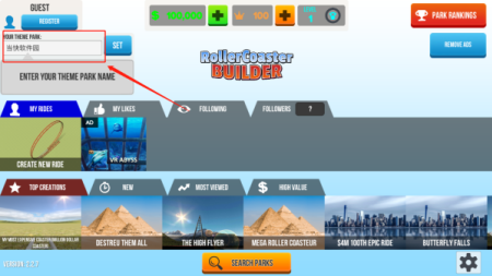 1、下载游戏进入,右上方可选择为自己的游乐场命名