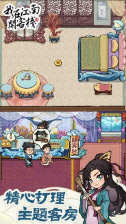 我在江南开客栈破解版免广告版是一款以古代江南为主要背景的模拟经营休闲手游,在游戏中你将扮演一位客栈掌柜负责客栈的经营,接待食客、打理客房、研发菜品、管理员工以及升级客栈都是不可或缺的环节,逐步扩大客栈的规模,让文人墨客、江湖侠士、达官贵人都成为您的贵宾,通过不断努力,你的客栈将逐渐成为江南水乡的一颗璀璨明珠,精致的古风人物角色塑造其中搭配上全逼着饭点日常装修布置到菜品升级,到如何吸引顾客一体化管理,真正感到了商业经营的独特乐趣,感兴趣的玩家可以来这里下载体验。