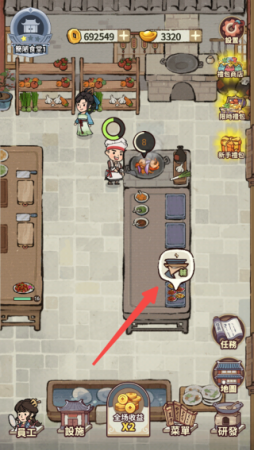 1、进入我在江南开客栈手游,等待客人上桌,点击点菜;