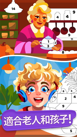 1、你永远也不会输!屏幕上绝对不会弹出“游戏结束”的提示!你只需要给图片涂上颜色,放松身心,尽情享受故事清洁就可以了。