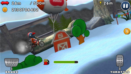 虽然在游戏的玩法上看起来比较的简单,但是想要持续进行游戏也不是那么轻松的。其游戏难点主要是上下坡期间对于车身平衡的把握,一旦处理不当,那么翻身飞出去还是很常见的。另外通过游戏收集金币,可以对赛车进行改装以及提前解锁许多场景地图。其实这样的挑战机制和玩法相比于大多横版赛车游戏,变化也不是很大,新鲜度也不算太高。
