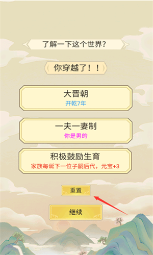 2、首先玩家可以了解这个世界,如果对穿越后的世界,可以选择重置;