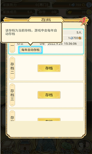 6、进入游戏后,要先点击存档,之后每年都会自动存档;