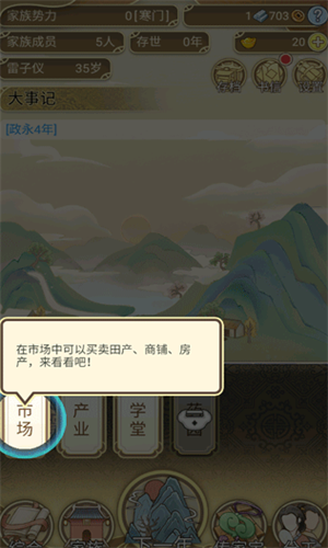 7、点击市场,可以买卖田产、商铺、房产等等;