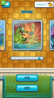 1、完成一关后,玩家可以通过拉动浴帘的方式偷窥正在洗澡的小鳄鱼,增加了游戏的趣味性和互动性。