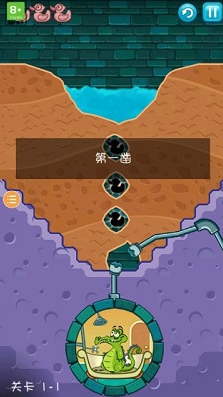 2、在多数关卡中,垂直向下拖动屏幕可以看到小鳄鱼在下方游动,为游戏增添了探索的乐趣。