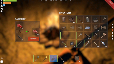 1、进入游戏后,我们是空背包状态,身上只有一个火把和石头,现在我们便开始了生存之旅。