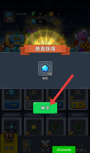 3、在商店中领取钻石后,点击确定按钮,确认获取奖励,积累资源用于游戏。