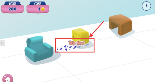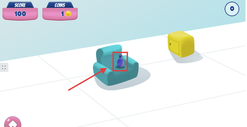 2、点击蓝色沙发上的水瓶,通过按住时间长短调整跳跃力度,目标是稳稳落在柜子等家具上。