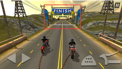3、高速行驶时注意观察前方红框内的FINISH标志,在铁链未断的前提下全力冲刺完成比赛。