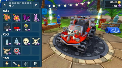 4、打造疯狂的集合,就像疯狂躲避球,火球和浮油。解锁和升级各种赛车,从沙滩车到怪物卡车。