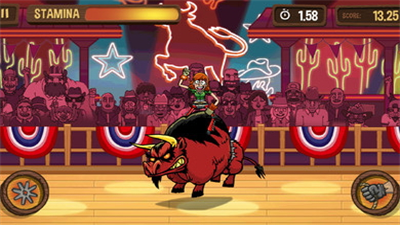 愤怒的公牛手机版破解版是一款街机风格的动作游戏。作为世界上最激动人心的体育娱乐赛事之一,职业骑野牛赛毫无争议是其中最为艰难的比赛。PBR赛事不仅是简单的骑术表演,它更是百分之百肾上腺素的激情,骑野牛赛更是骑术表演的精华。试想, 一体重150磅的牛仔要在重约2000磅的野牛背上挺8秒钟,那是何等的刺激。现在,你可以在你的设备中体验到这项刺激的运动。