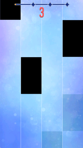 1、选择一首歌曲开始,界面会出现四个赛道,每个赛道会随歌曲的乐谱出现黑色的钢琴键,从上向下移动,点击钢琴键就会发出音符的声音,连续点击成功,音乐就会流畅的播放出来。