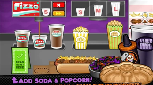 4、玩家努力卖出好吃的热狗,赚钱扩大店面,解锁饮料,爆米花等商品。