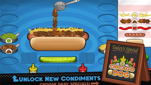 老爹热狗店中文版是一款非常好玩的模拟经营类游戏,在这款游戏中,玩家将经营一家热狗店,你需要选择不同食材制作出美味的热狗,并且将你制作的热狗售卖给顾客获得金钱,在热狗店中有很多的工具以及资源提供给玩家使用,而且很真实的还原热狗的制作过程,你可以在这里熟练掌握制作的方法。游戏中有的顾客还有着自己的要求,玩家需要按照要求来制作,这样能够获得更好的评价,他们的评价将会影响到自己店铺之后的生意。感兴趣的话就来下载体验吧。